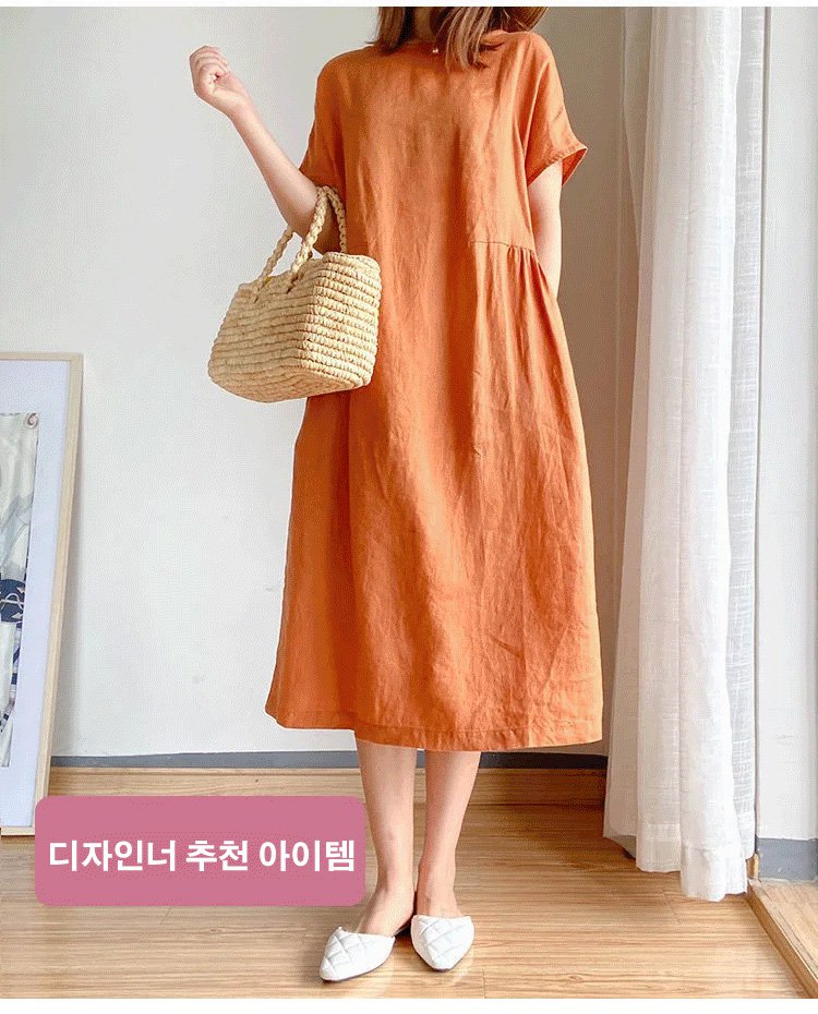 여성 미니멀 루즈핏 면마 원피스