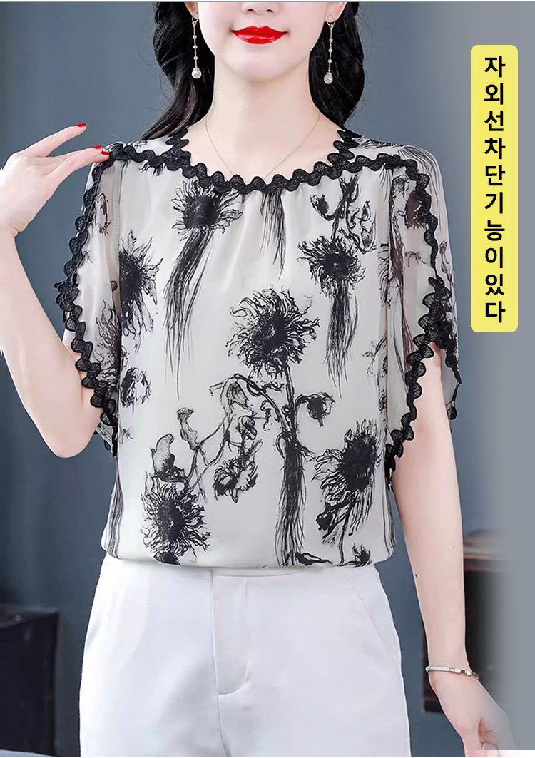 아이스 실크 쉬폰 루즈핏 슬림 블라우스